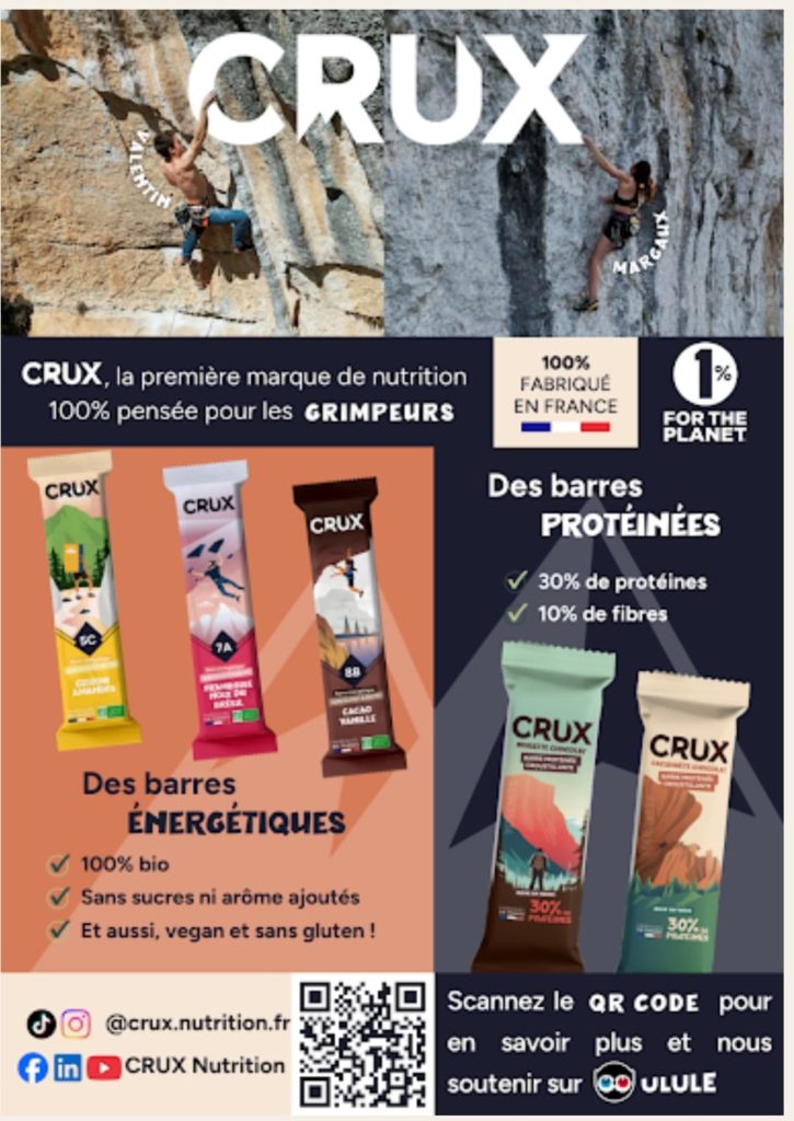 Un grand merci à la marque française de nutrition Crux, spécialisée dans la vente de barres énergétiques.