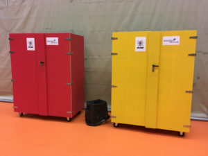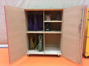 L’autre armoire (Jaune) permet de stocker le reste du matériel nécessaire aux cours uniquement (baudrier, matériel d’assurage, etc.)