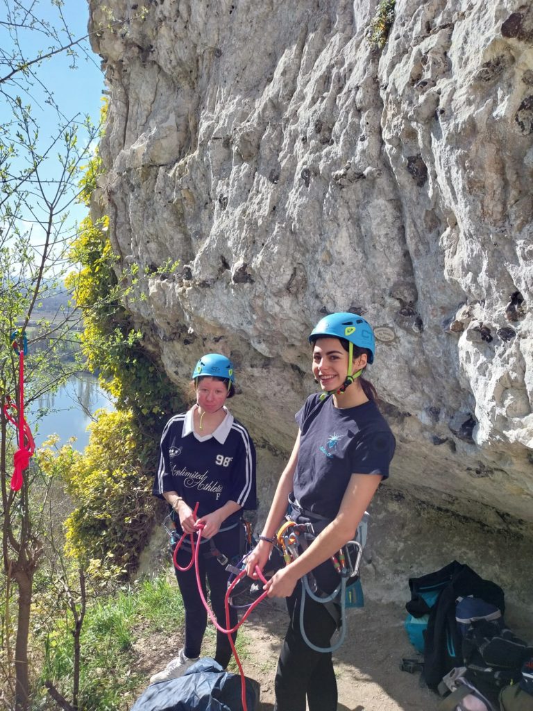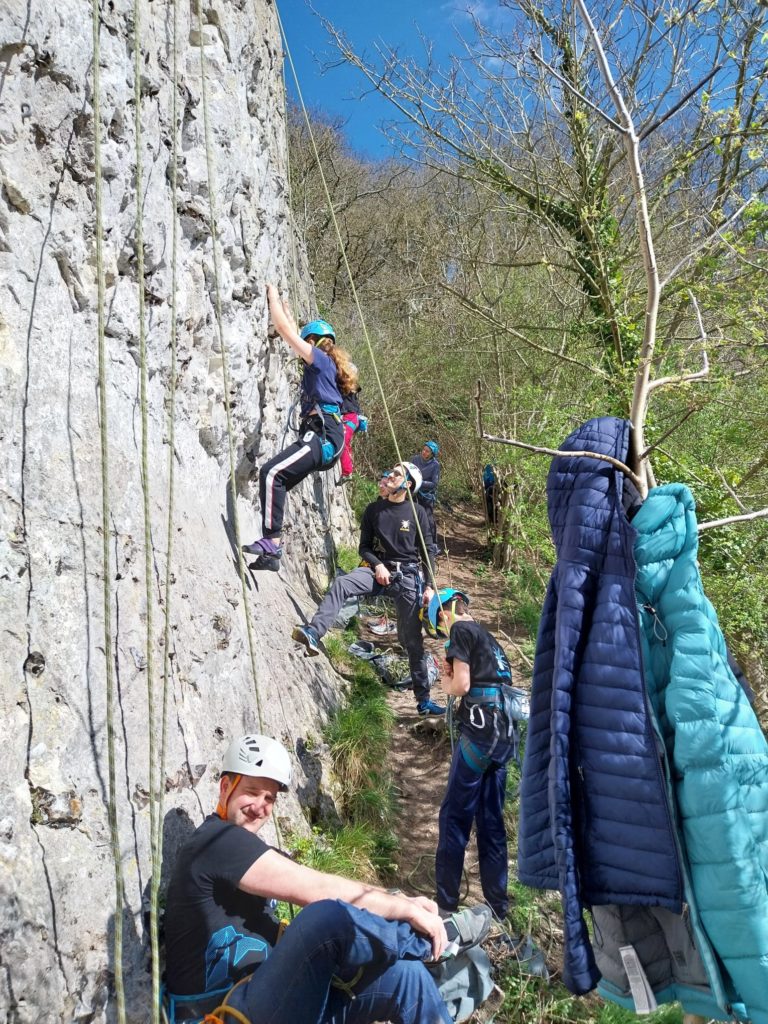 Au programme : découverte du rocher pour certains, révisions ou apprentissage des manips, initiation à la grande voie et descente en rappel pour d’autres.
