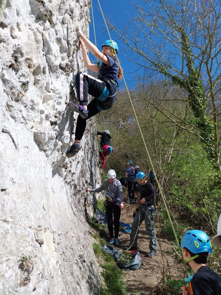 Les 12 chanceux vont profiter de conditions topissimes pour escalader cette belle falaise de craie blanche, en moulinette ou en tête selon le niveau. Certains pourront s’essayer à quelques manip’ de falaise comme l’installation d’une moulinette ou la descente en rappel.